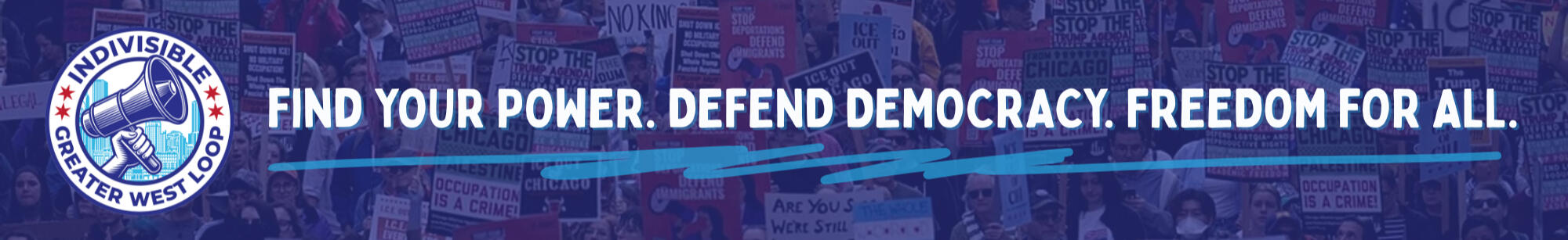 Welcome to Indivisible Greater West Loop! We're a neighborhood chapter of the Indivisible Chicago Alliance. We can't wait to meet you.Find Your Power. Defend Democracy. Freedom for All.We are a welcoming, action-driven community defending democracy and fighting for freedom for all. Rooted in progressive values, we resist policies and systems that harm our communities. We organize nonviolent, effective actions to create a more just and inclusive future. Whether you’re new to activism or a seasoned organizer, there's a place for you to plug in and find your power.Community. Power. Action. Progress.